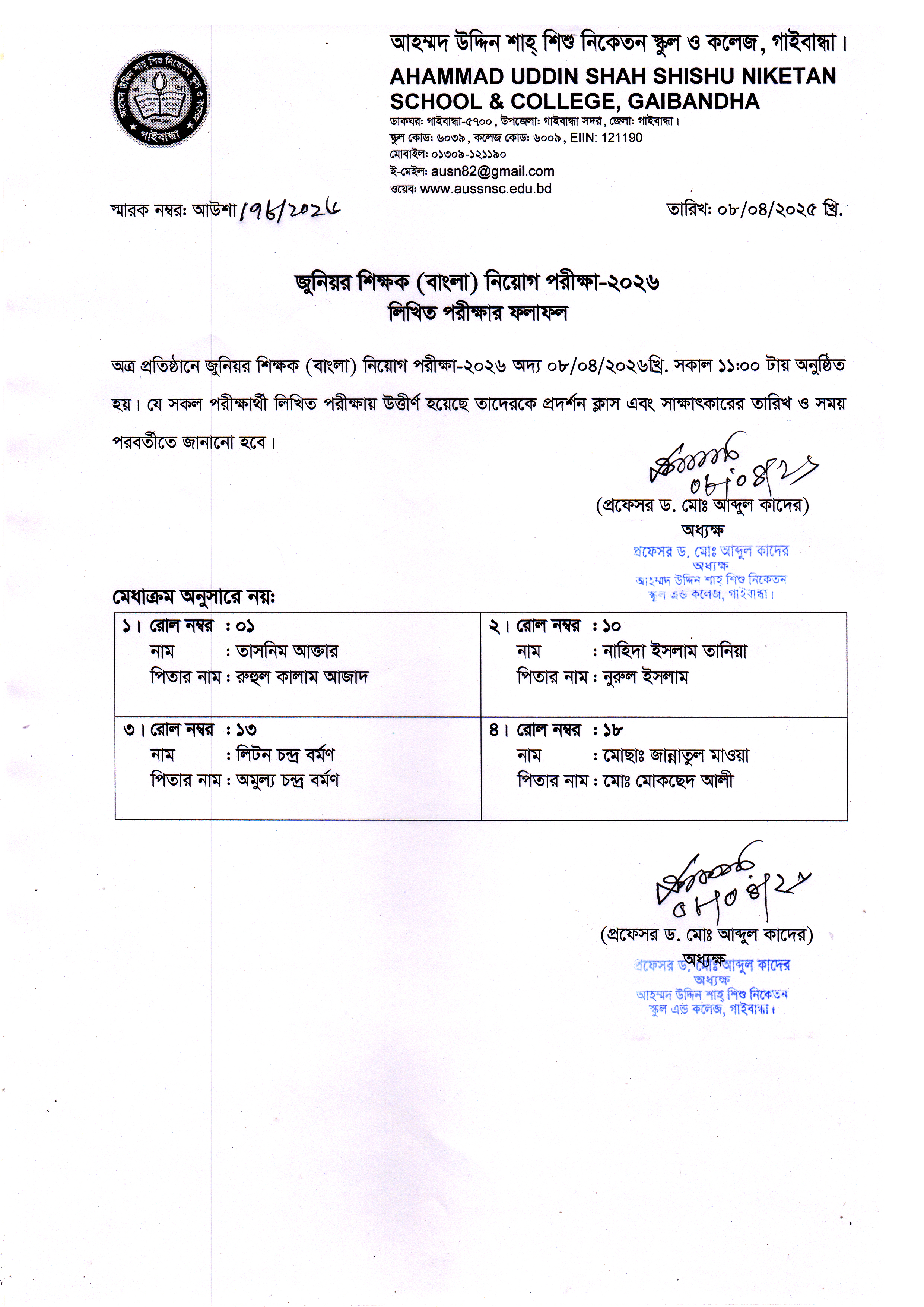Copyright reserved Ahammad Uddin Shah Shishu Niketan School and College. 2026